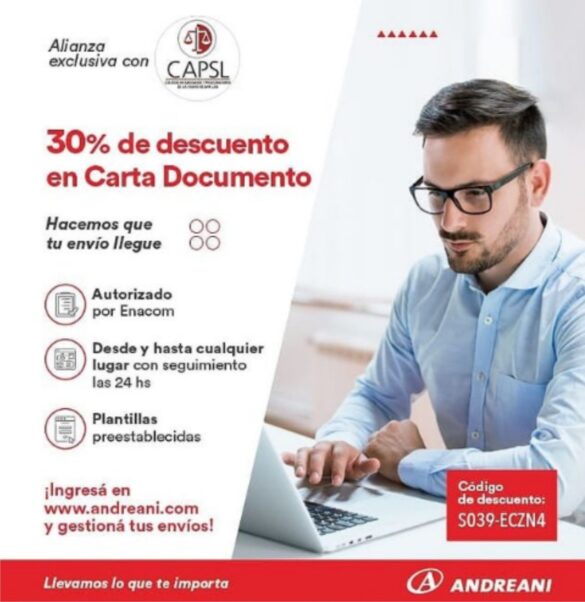 ¡No te olvides! Todos nuestros matriculados tienen un descuento del 30% en el envío de cartas documento por Andreani, gracias...