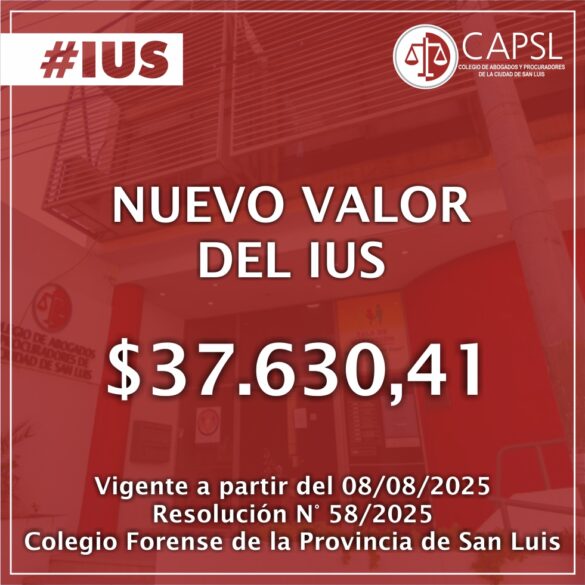 Mediante la resolución N° 56 de 2025, el Colegio Forense de la Provincia de San Luis comunicó el nuevo reajuste...