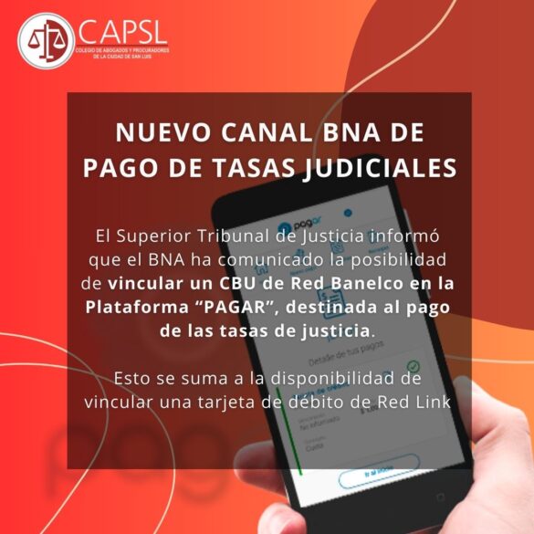 Nuevos canales de pago de tasas de justicia BNA
