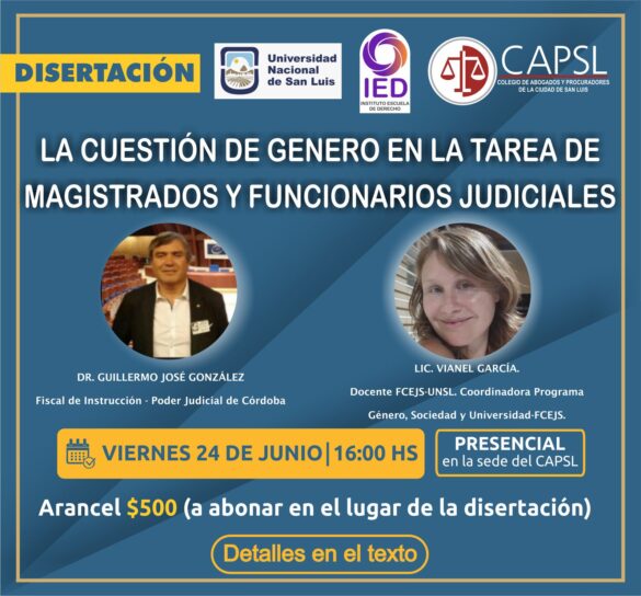 Disertación: “La cuestión de género en la tarea de Magistrados y Funcionarios Judiciales”