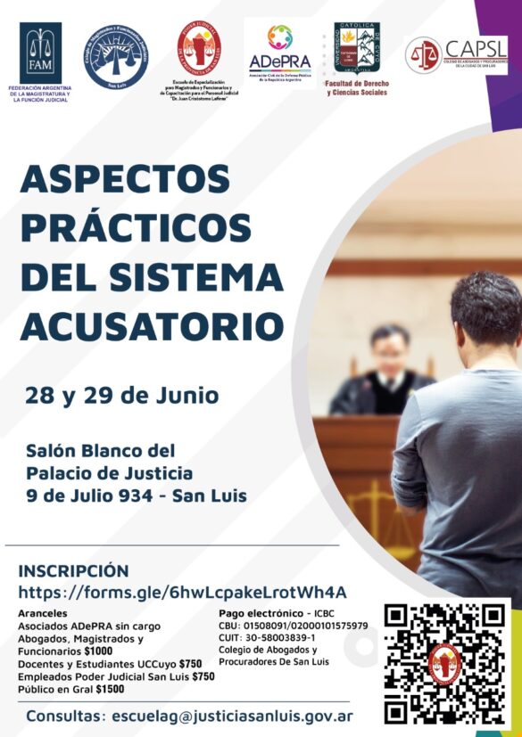 Se realizará una jornada sobre “Aspectos prácticos del Sistema Acusatorio”