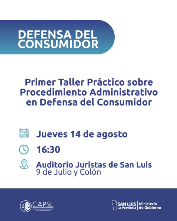 El próximo jueves 14 de agosto, a las 16:30, se llevará a cabo el Primer Taller Práctico sobre Procedimiento Administrativo...