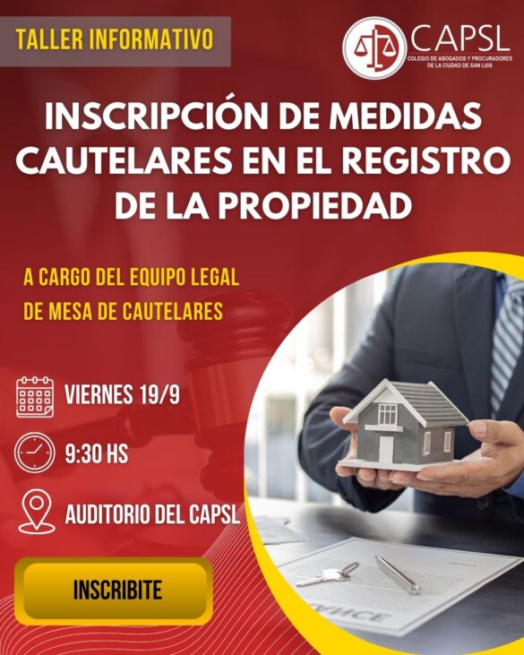 📢 ¡Atención colegas! Los invitamos a participar del Taller Informativo de Inscripción de Medidas Cautelares en el Registro de la...
