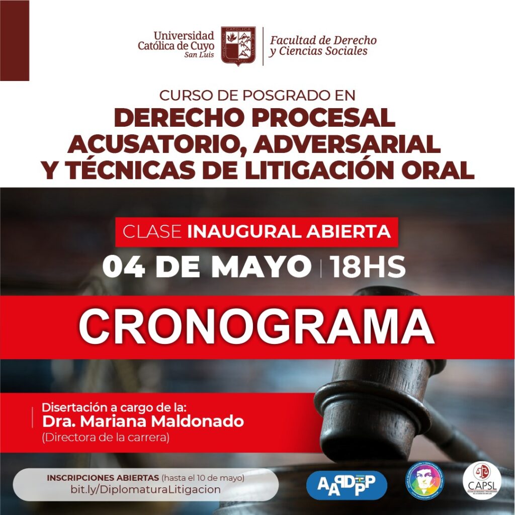 Capacitaciones Cronograma completo del Posgrado en Derecho Procesal Acusatorio, Adversarial y Técnicas de Litigación Oral Comunicacion CAPSL, 9 mayo, 2023 – Leé el cronograma completo: Diplomatura-Litigacion-Cronograma Inscripciones a través del siguiente link: http://bit.ly/DiplomaturaLitigacion Previous Imágenes de la Capacitación "Teoría de la Decisión y Negociación" Next Capacitación "Teoría de la Decisión y Negociación" Related posts Noticias EL CAPSL presentó el Observatorio de Prácticas Tribunalicias ante el Superior Tribunal y abordó temas de relevancia actual Comunicacion CAPSL, 25 julio, 2024 Noticias XXXII Jornadas Nacionales del Foro Federal de Consejos de la Magistratura Comunicacion CAPSL, 20 abril, 2023 Noticias Sumate al Registro de Abogados Especialistas en Salud y Discapacidad del CAPSL Comunicacion CAPSL, 1 agosto, 2024 Noticias El Colegio de Abogados participó en la Jornada sobre la Ley de Riesgos del Trabajo Comunicacion CAPSL, 6 agosto, 2025 Noticias Diplomatura Universitaria en Desarrollos Inmobiliarios Comunicacion CAPSL, 23 marzo, 2023 Noticias El CAPSL asistirá a los matriculados que deseen postularse al Ministerio Público Fiscal Comunicacion CAPSL, 4 febrero, 2022