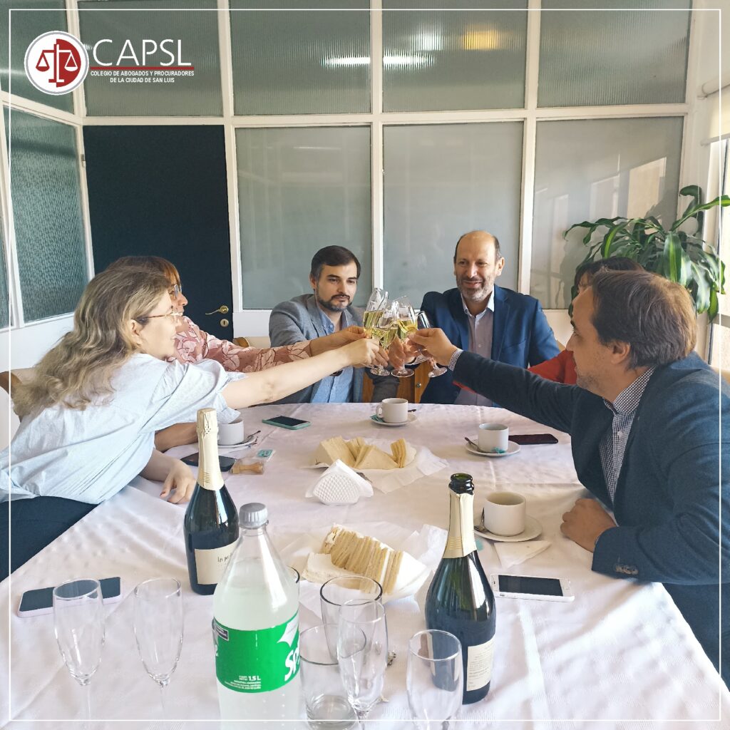 En un emotivo evento celebrado este viernes por la mañana, autoridades del CAPSL compartieron un ágape con los distinguidos miembros del Tribunal de Ética saliente, los Dres. Melina Maluf Martínez, Carolina del Rosario Guzmán y Gustavo Daniel Gorra; y la Secretaria del mismo, Dra. Gabriela Verón, deseándoles éxitos en sus próximos proyectos y agradeciéndoles por los servicios y esfuerzos brindados durante su mandato.
