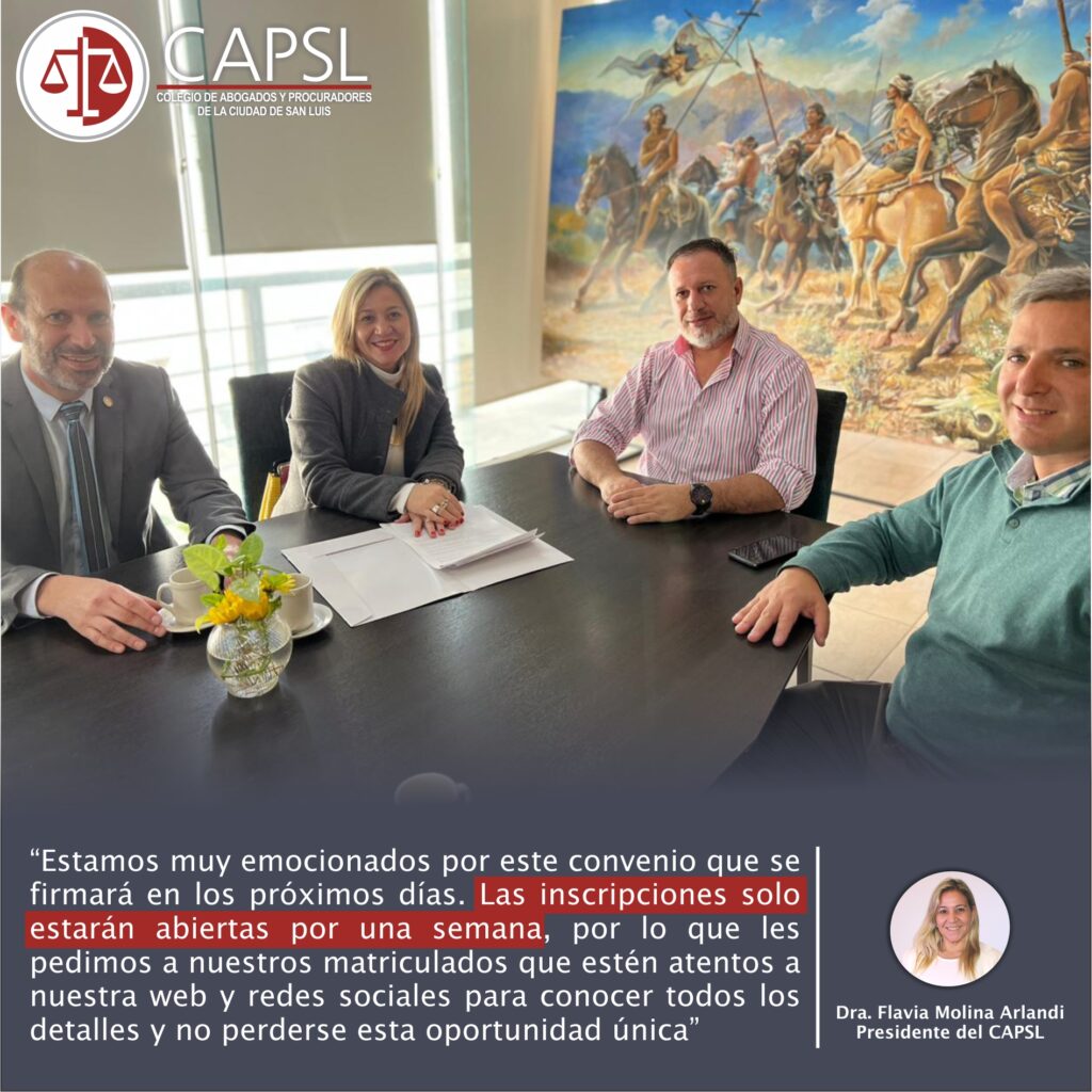 “Estamos muy emocionados por este convenio que se firmará en los próximos días. Las inscripciones solo estarán abiertas por una semana, por lo que les pedimos a nuestros matriculados que estén atentos a nuestra web y redes sociales para conocer todos los detalles y no perderse esta oportunidad única”, manifestó la Dra. Molina Arlandi al finalizar el encuentro.